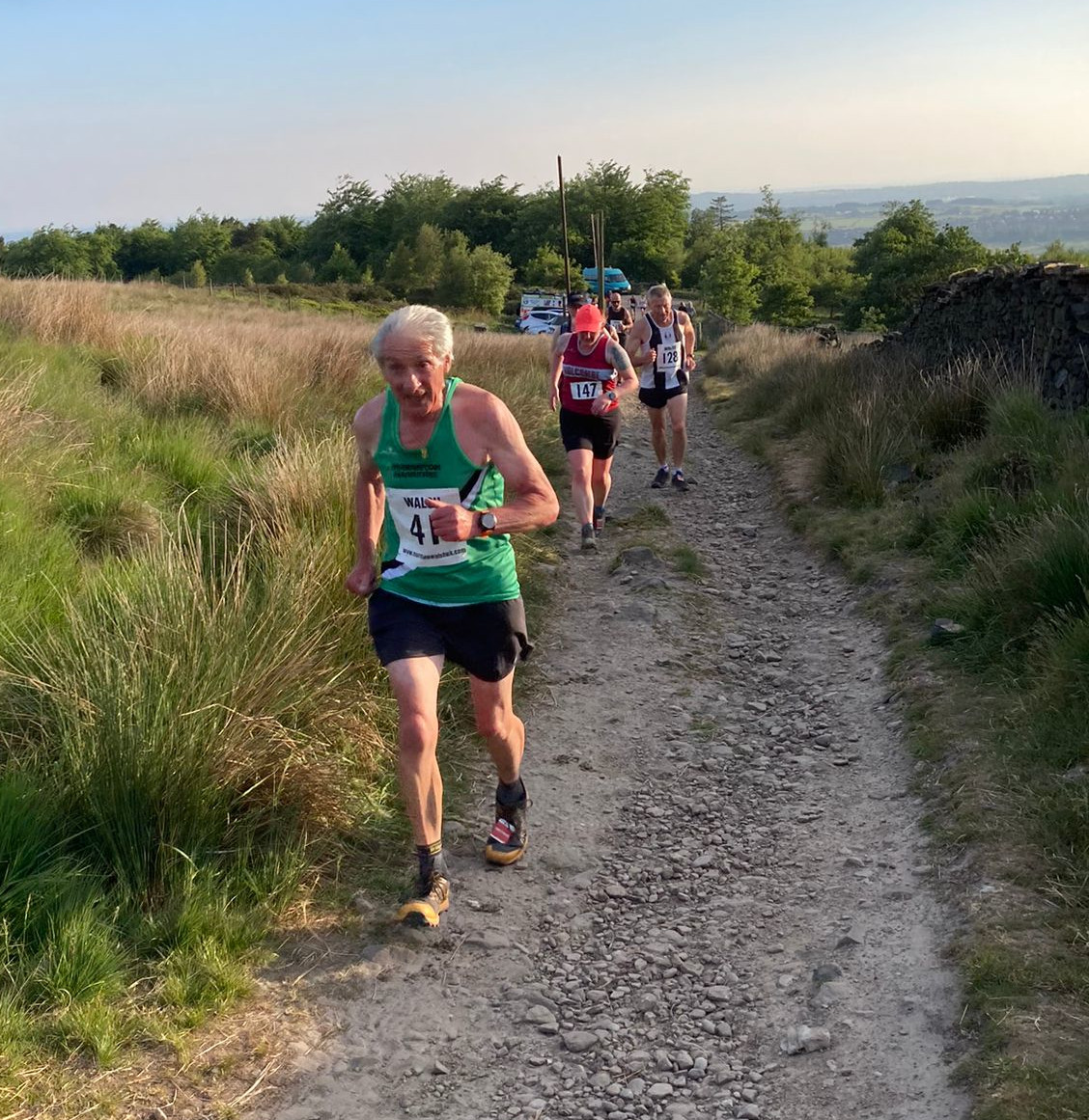 It was flat out running on the Walsh 2 Lads in race 5 of the Run The Moors Fell GP. John Hall won his age category as did Ruth Hare, making a welcome return to the hills. What can be better than that?
